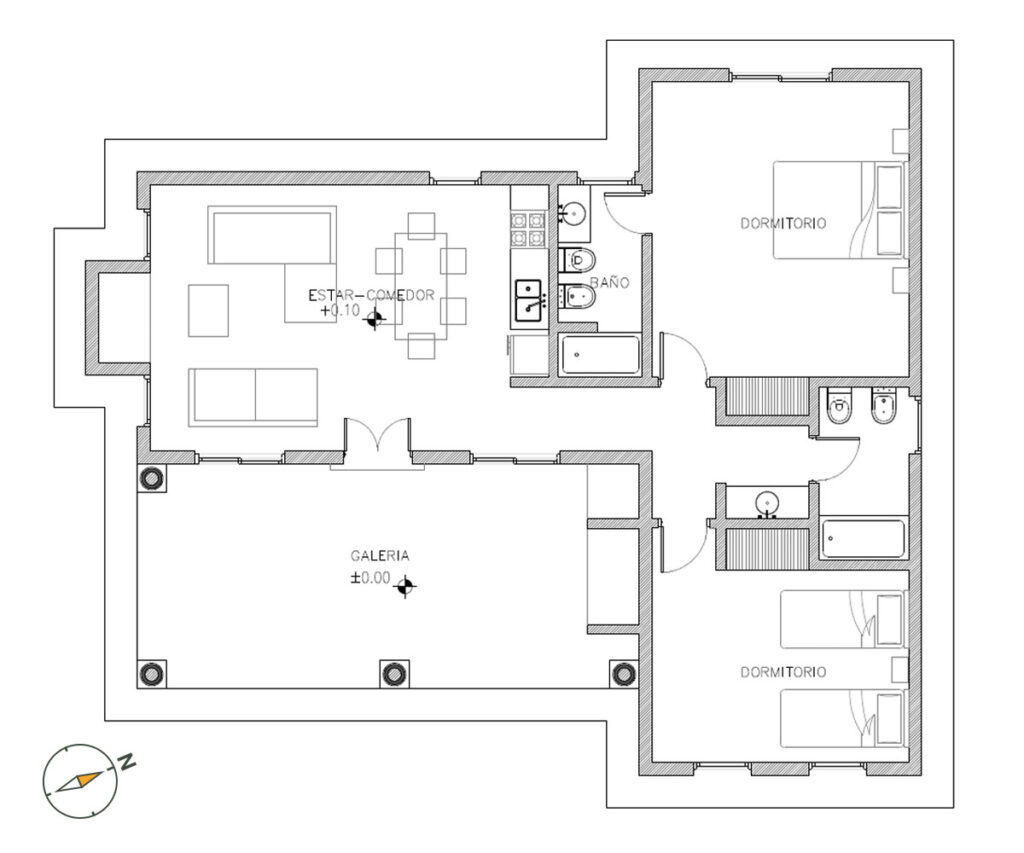 Cuenta con 113mt2 (86 cubiertos y 27 semicubiertos) distribuidos en dos dormitorios, estar-comedor-cocina, dos baños (uno de ellos en suite) y galería.