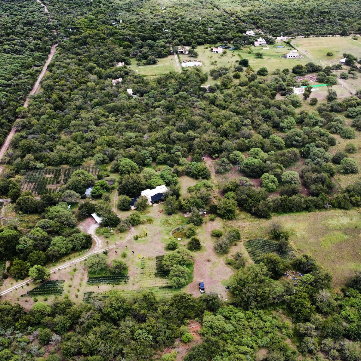 DESCRIPCIÓN: Macrolote con casa y finca. Posee perforación propia de agua, 1.200 plantaciones de vides, más de 350 frutales de todo tipo con riego automatizado, huerto orgánico junto a invernadero, laguna artificial con lotos y nenúfares, plantaciones de almendros, nogales y pistacheros y gallinero propio. Una finca para quienes valoran el equilibrio entre naturaleza, bienestar y producción consciente.