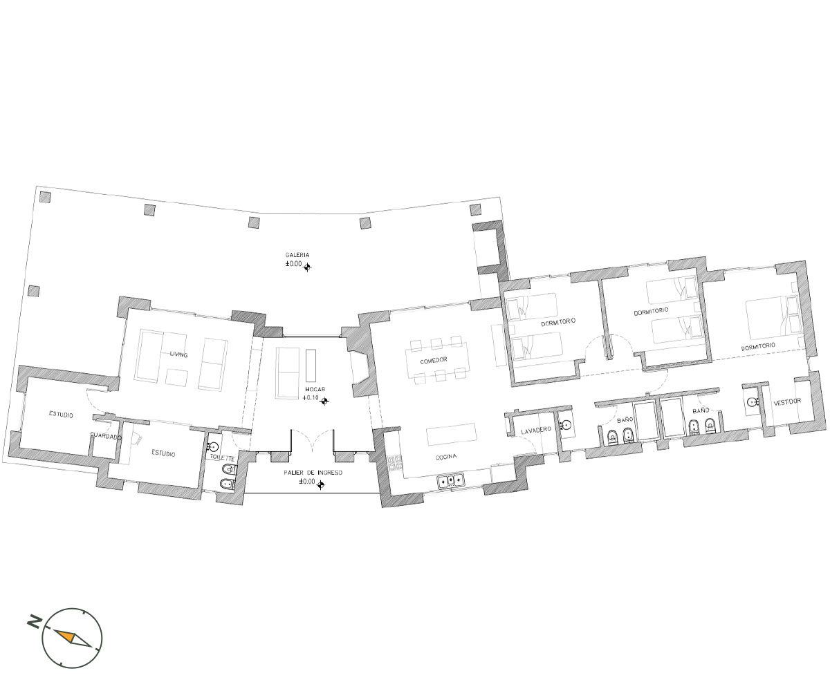 Cuenta con 299 mt2 (207 cubiertos y 92 semicubiertos) ofrece confort y eficiencia energética. 1 dormitorio en suite, 2 habitaciones adicionales, baño completo y baño social, cocina comedor, living, escritorio, espacio adicional para estudio/servicio/guardado y amplia galeria con asador y horno chileno a gas. Aberturas de DVH y losa radiante.