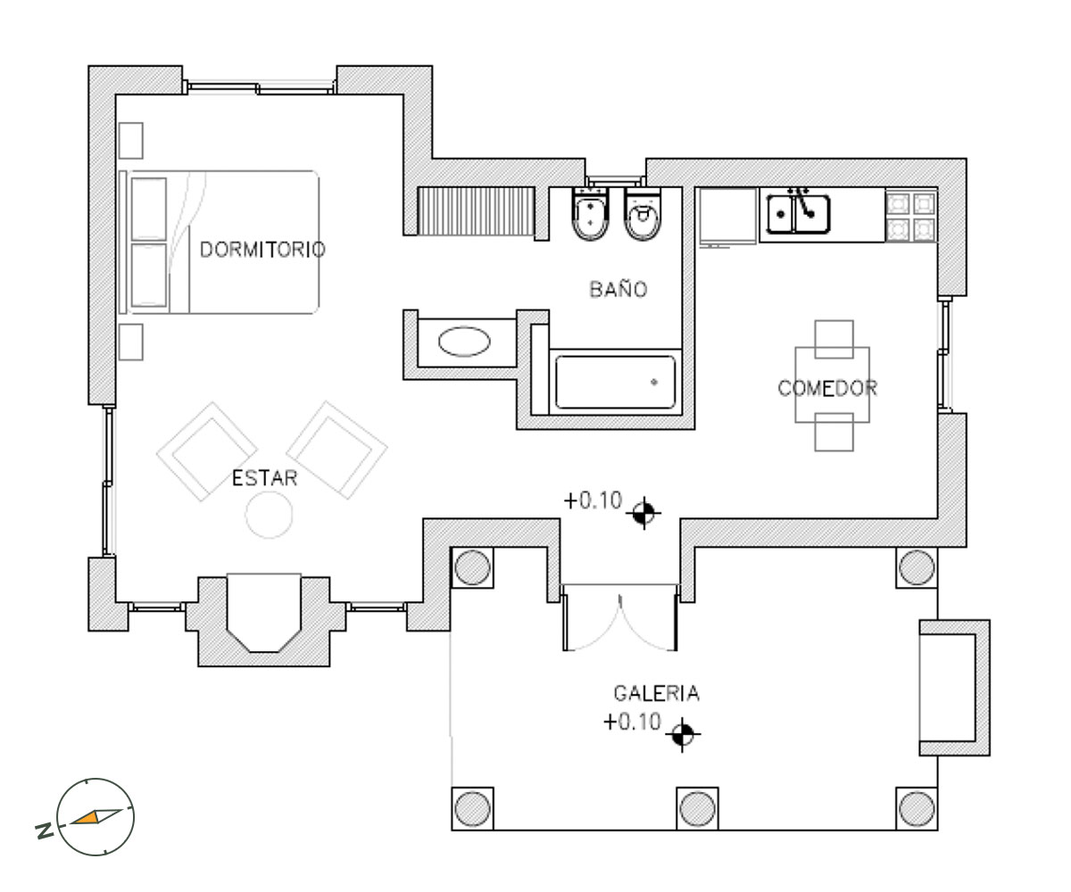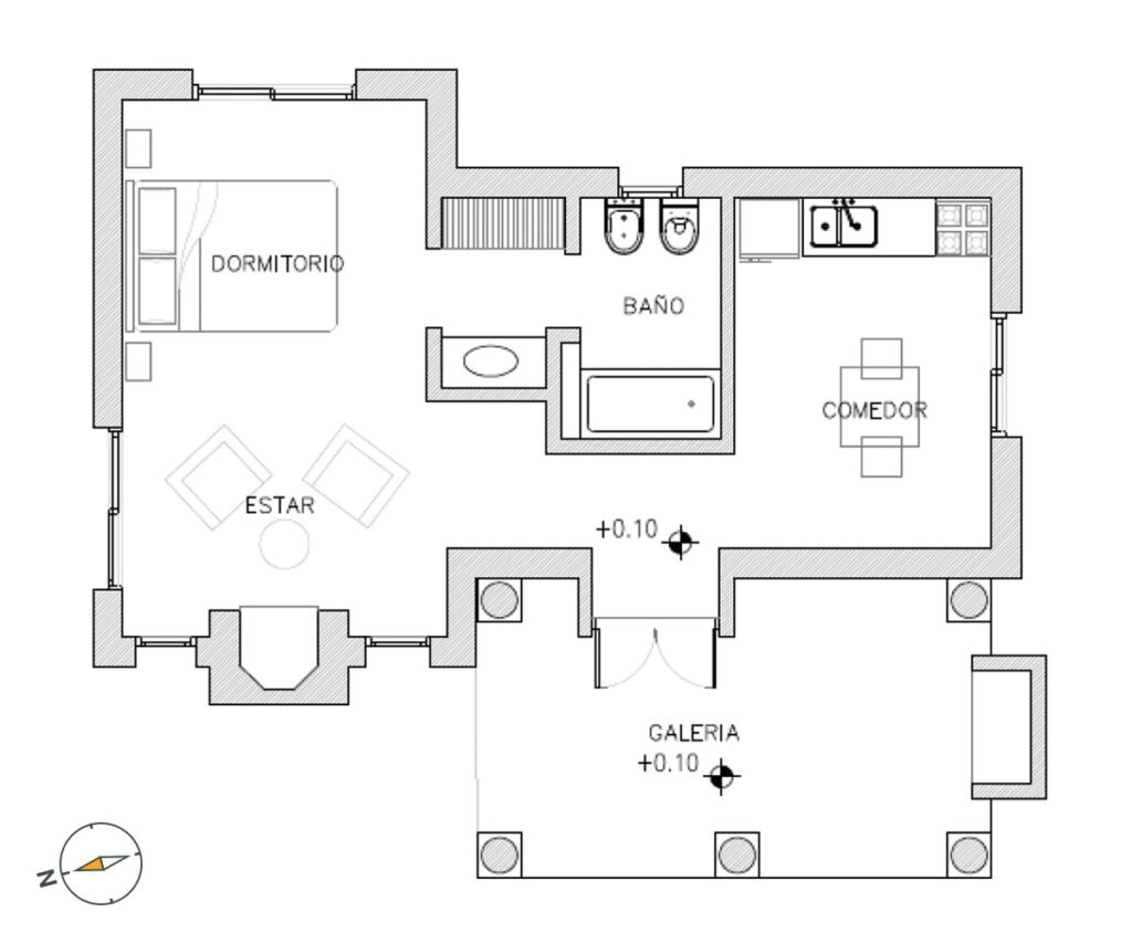 Cuenta con 63mt2 (47,40 cubiertos y 15,60 semi cubiertos) distribuidos en dormitorio, estar-comedor-cocina, baño en suite y galería.